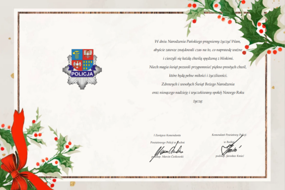 Świąteczne życzenia kierownictwa Komendy Powiatowej Policji w Bochni