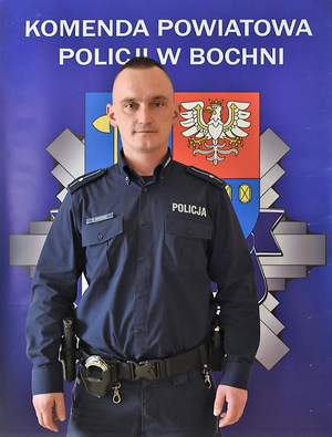 Młodszy aspirant Radosław Krokosz służbę w policyjnym mundurze rozpoczął w 2018 roku. Od samego początku jest funkcjonariuszem Wydziału Prewencji Komendy Powiatowej Policji w Bochni.