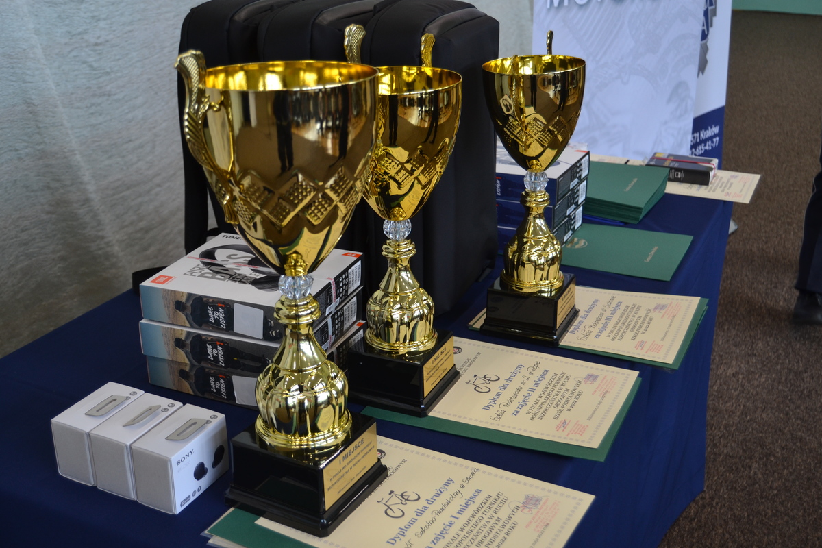 Zwycięzcy otrzymali wspaniałe nagrody i puchary oraz dyplomy ufundowane przez Małopolską Wojewódzką Radę Bezpieczeństwa Ruchu Drogowego, Kuratorium Oświaty w Krakowie, PZM Oddział w Krakowie oraz firmę Gomar Stal.
