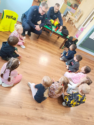 W trakcie obu prelekcji uczniowie oraz przedszkolaki mogły wysłuchać szeregu informacji związanych z codzienną, policyjną służbą oraz przymierzyć elementy policyjnego umundurowania.