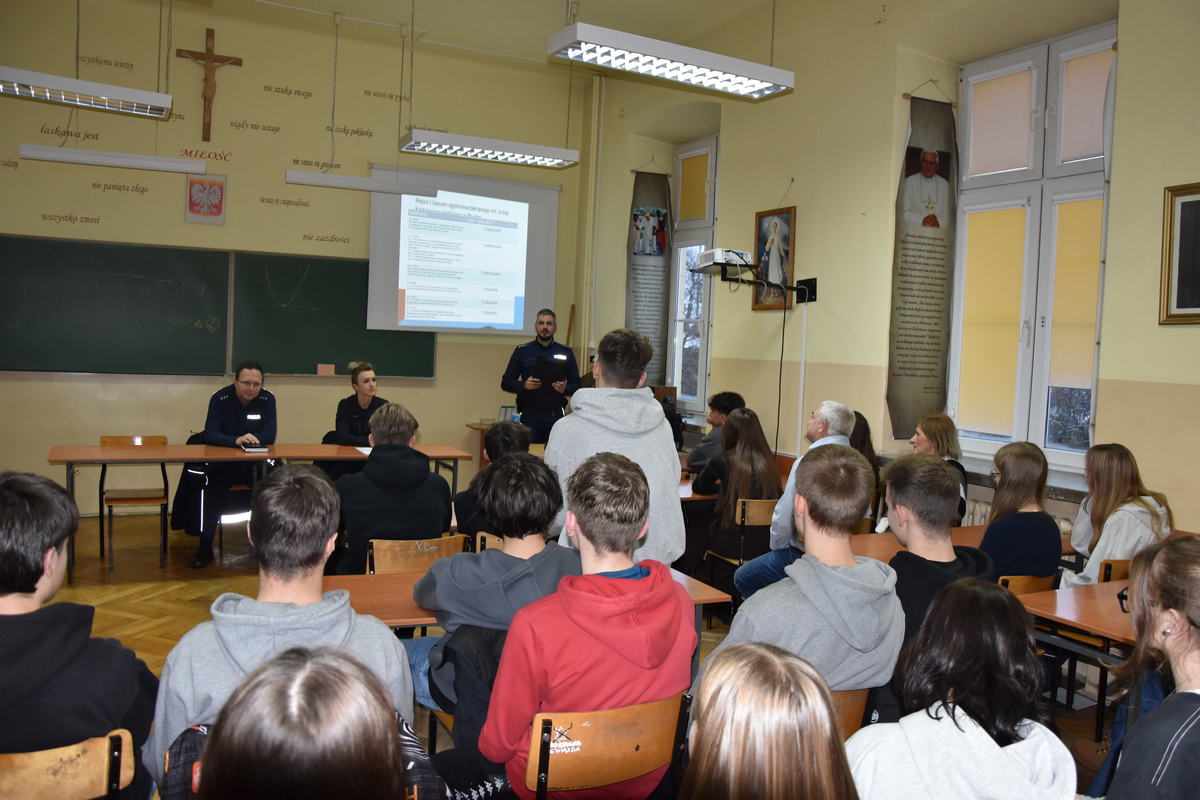 Środowe spotkanie zostało więc przeznaczone na przedstawienie przez mundurowych działań, które podjęli od grudnia ubiegłego roku oraz na ocenę poprawy bezpieczeństwa, która przez przybyłe na spotkanie osoby - dyrekcję szkoły, grono pedagogiczne oraz społeczność uczniowską - została odebrana pozytywnie.