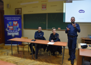 „Zagrożenia występujące w rejonie I Liceum Ogólnokształcącego w Bochni” – podsumowanie oraz przedstawienie podjętych działań w powyższym temacie było najważniejszym celem debaty ewaluacyjnej, która odbyła się w środę. Spotkanie przeprowadzili funkcjonariusze Zespołu ds. Nieletnich Komendy Powiatowej Policji w Bochni.