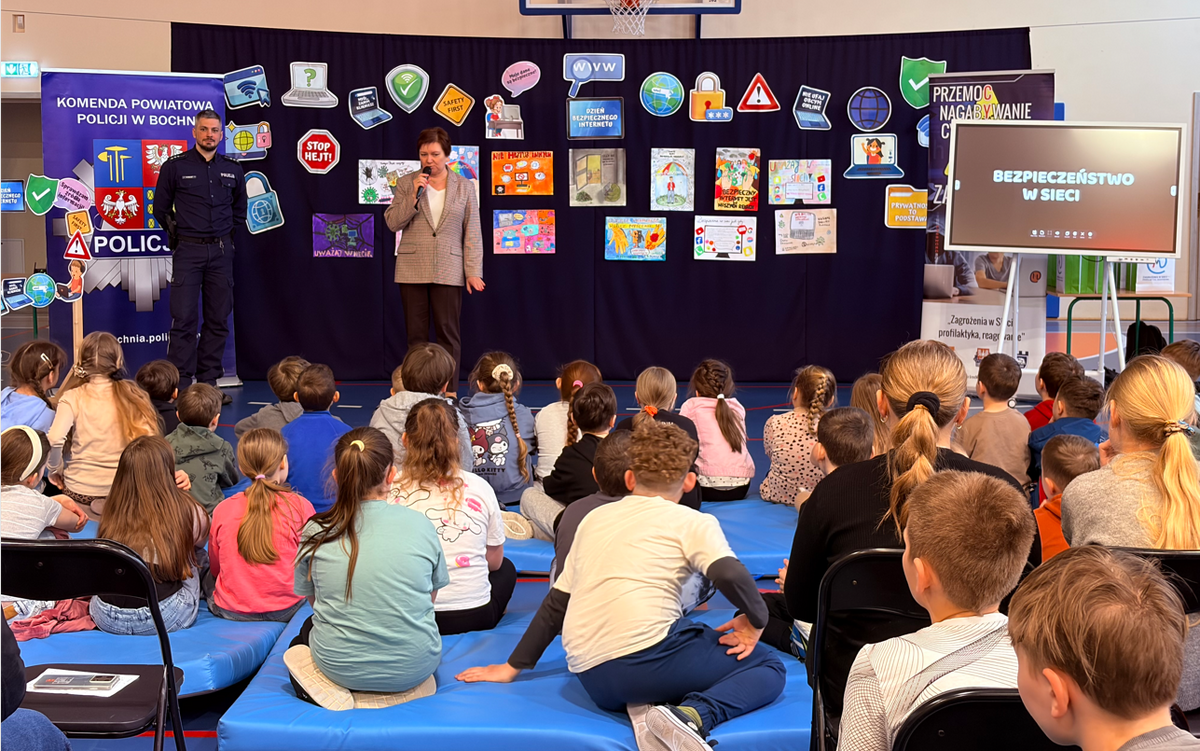 Udział w ogłoszeniu wyników, wręczeniu nagród oraz wyróżnień wzięli policjanci Zespołu ds. Nieletnich Komendy Powiatowej Policji w Bochni. Jeszcze przed zakończeniem części konkursowej funkcjonariusze przeprowadzili prelekcje, w trakcie której omówili szereg zagrożeń związanych z korzystaniem z Internetu oraz przedstawili wskazówkami i porady, które pozwolą się przez nimi chronić.