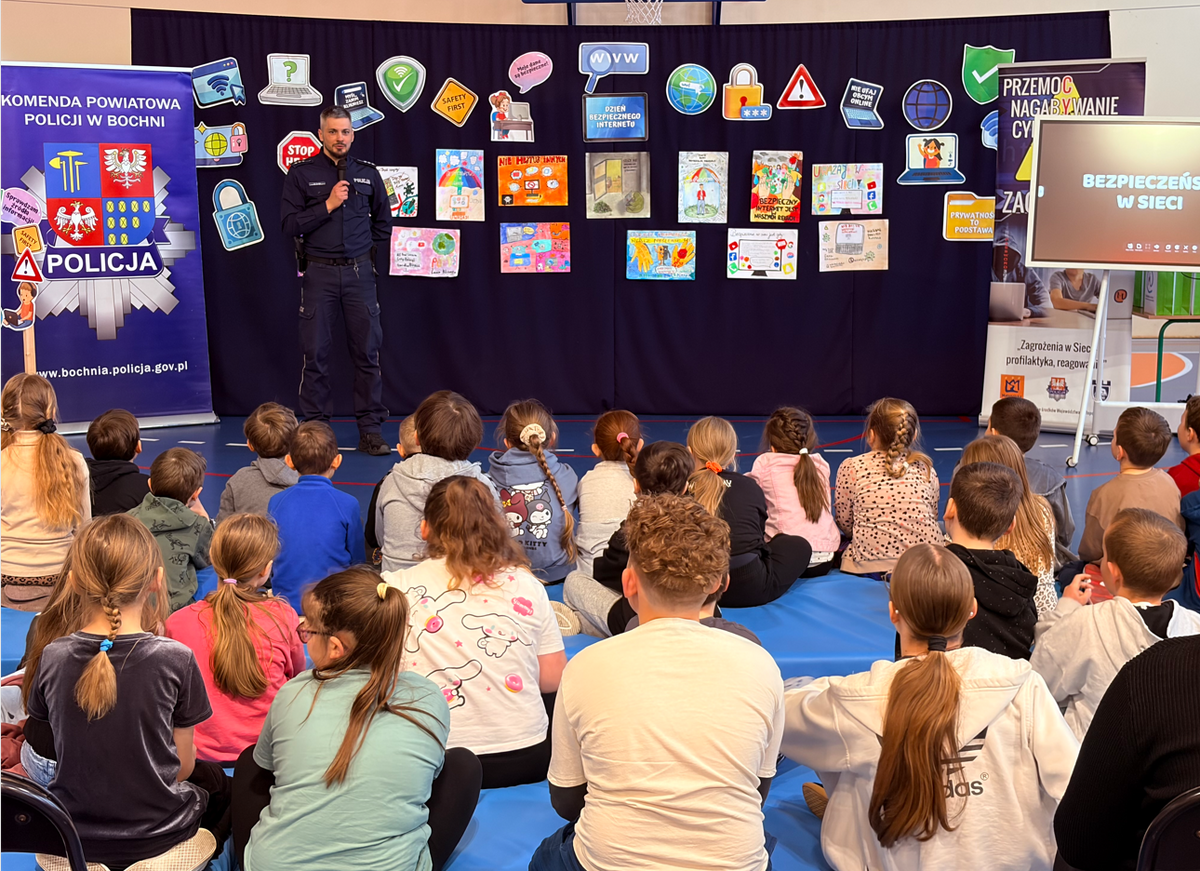 W czwartek (26 marca br.) w Szkole Podstawowej w Jodłówce odbyło się ogłoszenie wyników konkursu związanego z bezpieczeństwem w Internecie. Konkurs został zorganizowany i ogłoszony wspólnie przez bocheńskich policjantów oraz dyrekcję i pedagogów szkoły. W jego ramach dzieci z klas 1-6 miały za zadanie wykonać rysunki przedstawiające zagrożenia w sieci, natomiast uczniowie klas 7-8 przygotować nagrania filmowe o tej samej tematyce. Celem konkursu było promowanie zasad bezpiecznego korzystania z Internetu oraz zwiększanie świadomości na temat zagrożeń w sieci. Uczestnicy wykazali się ogromną kreatywnością, wiedzą i zaangażowaniem, wystawiając do konkursu prace wykonane na bardzo wysokim poziomie.