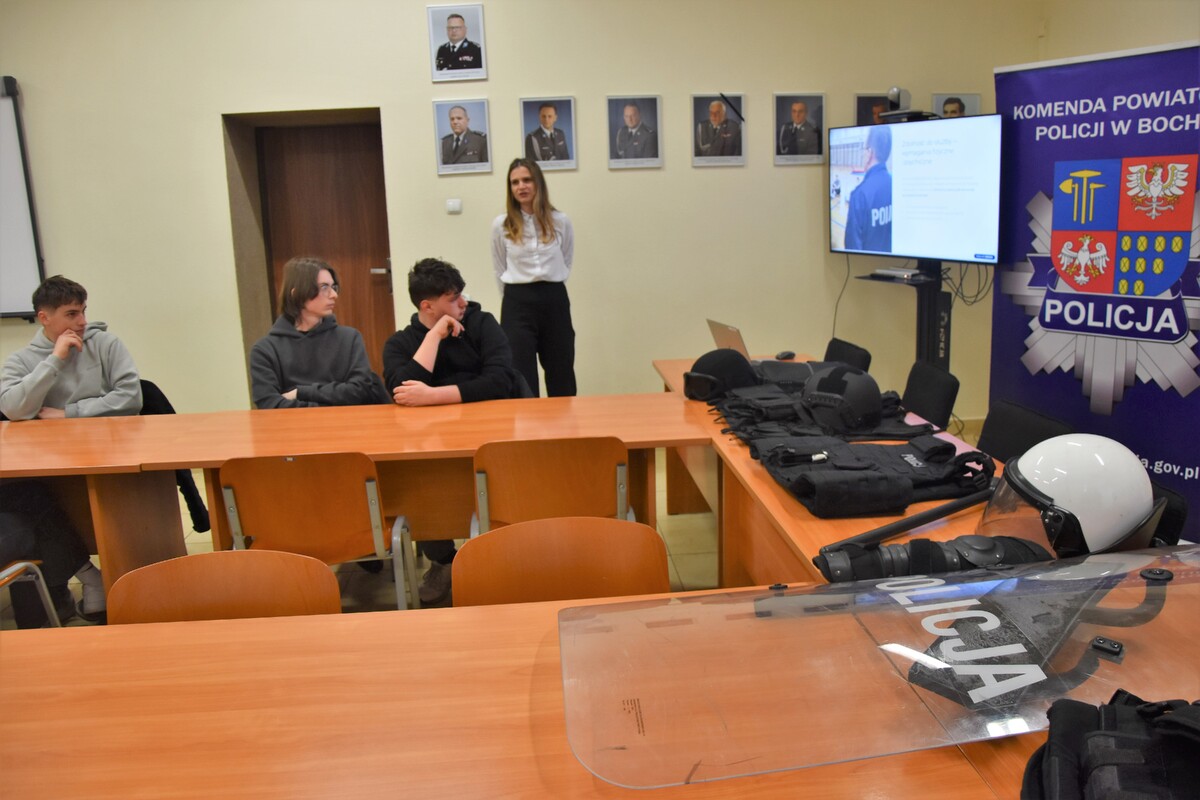 Policjanci Komendy Powiatowej Policji w Bochni prowadzą regularne działania mające na celu promocję zawodu policjanta. Jedno z takich spotkań miało miejsce w piątek, w bocheńskiej jednostce, do której stawili się uczniowie Zespołu Szkół nr 3 w Bochni.