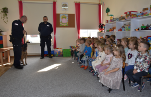 Policjanci Komendy Powiatowej Policji w Bochni odwiedzili dzieci z Publicznego Przedszkola w Gierczycach. Funkcjonariusz rozmawiali z najmłodszymi o ich codziennym bezpieczeństwie, przypominając zasady prawidłowych zachowań. Jedną z przygotowanych przez mundurowych atrakcji był pokaz tresury psa policyjnego.