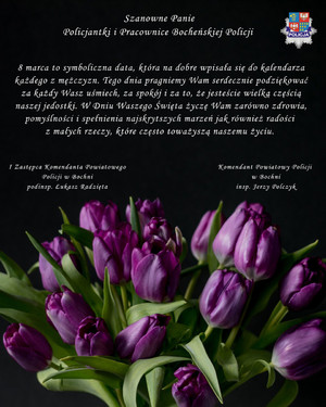 Życzenia Kierownictwa Komendy Powiatowej Policji W Bochni z okazji Dnia Kobiet