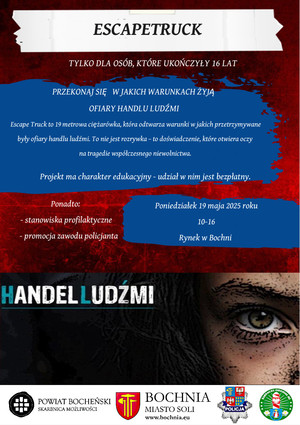 Bochnia znalazła się na liście 16 miast, które w bieżącym roku goszczą na swoim terenie projekt Escapetruck. 19 metrowa ciężarówka, której wnętrze odtwarza warunki, w jakich przetrzymywane były ofiary handlu ludźmi to pomysł opracowany przez Policję holenderską, Ambasadę Królestwa Niderlandów w Polsce, Uniwersytet Wrocławski oraz Komendę Główną Straży Granicznej oraz Fundację Reshape. Projekt jest promowany przez polską Policję.