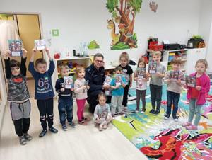Policjanci wręczali przedszkolakom laurki profilaktyczne dla ich babć i dziadków