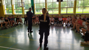 W ramach akcji „Kręci mnie bezpieczeństwo w lecie” bocheńscy policjanci przeprowadzili w czwartek „pogadankę” z uczestnikami półkolonii w Rozdzielu. Mundurowi omówili tematykę bezpieczeństwo podczas okresu wakacyjnego, zasady zachowania bezpieczeństwa w Internecie oraz zagrożenia związane z demoralizacją młodzieży.